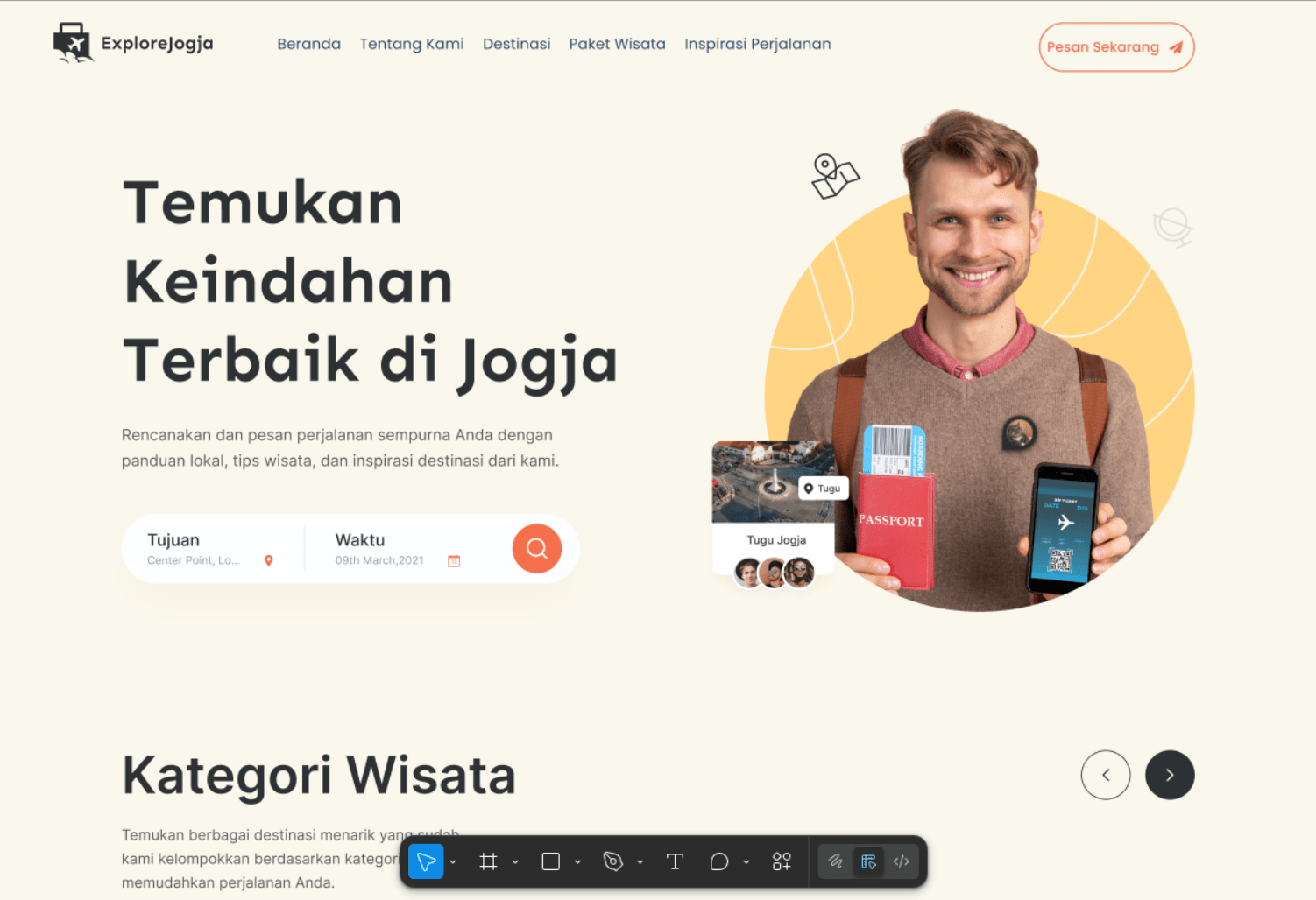 I also needed to make sure the design worked smoothly on both desktop and mobile, which meant carefully planning the layout to stay clean and responsive. Another challenge was building a sense of trust and excitement for users who may be unfamiliar with Jogja. I tackled this by using warm imagery, real testimonials, and friendly copy to make the experience feel personal and reliable.